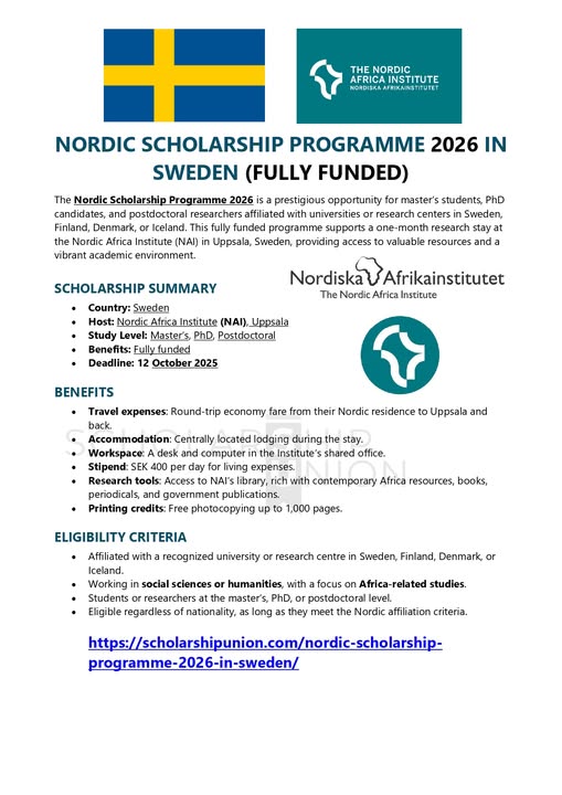 Nordic Scholarship Programme 2026 in Sweden (Fully Funded)